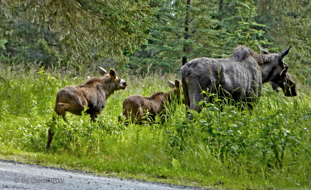 Moose with 2 calves, Kenai Peninsula, Alaska, USA