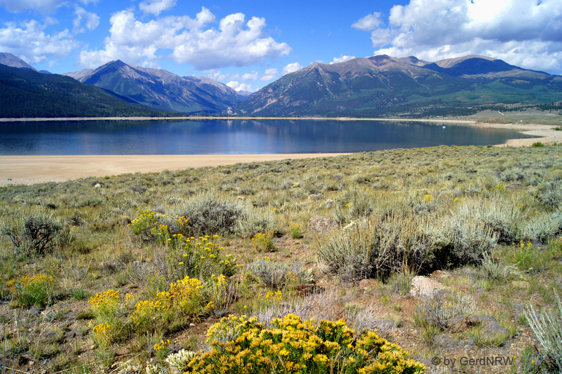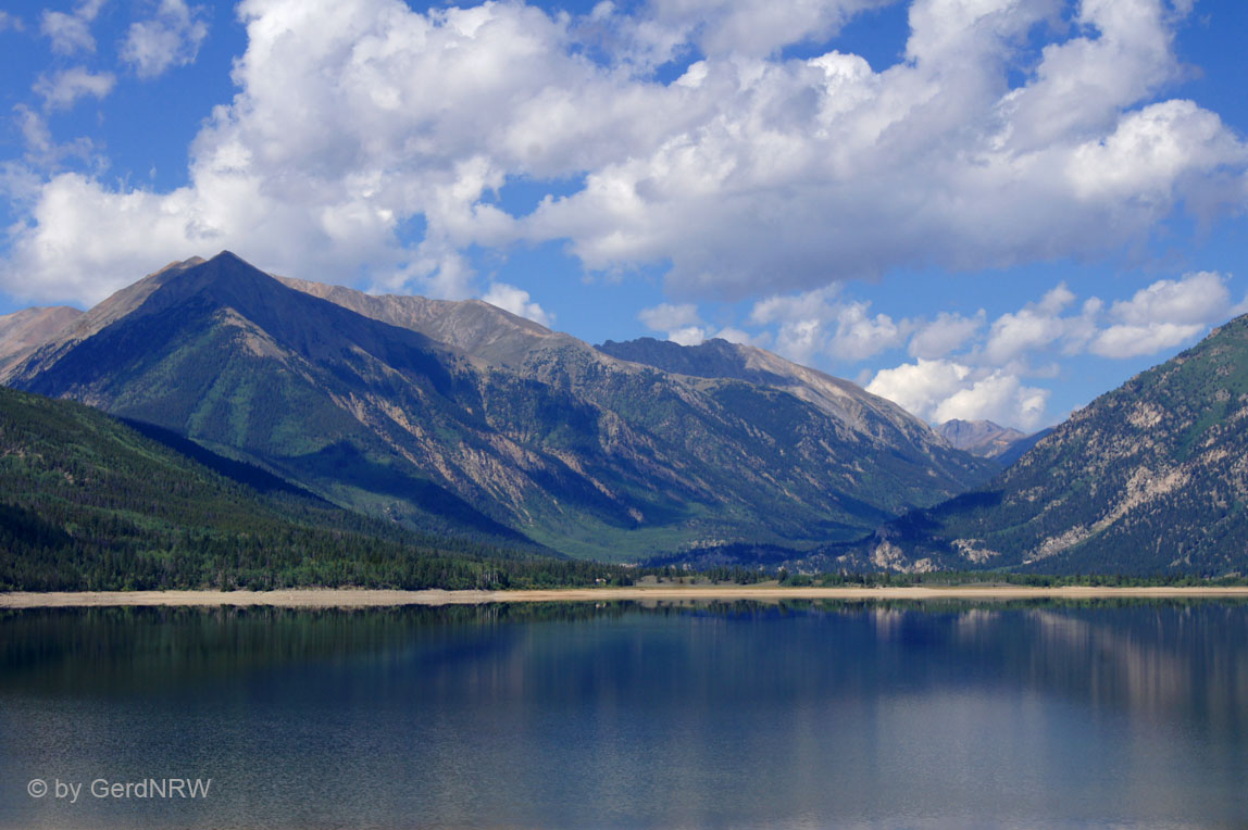 Twin Lakes and Twin Peaks (13,783 ft / 4,201 m - left), Colorado, USA
